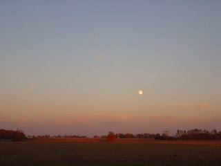 En las fotos que muestro la luna no espera que la noche caiga por completo para hacer su aparicion, sobre un paisaje que todavia muestra signos de los colores de la Estacion.