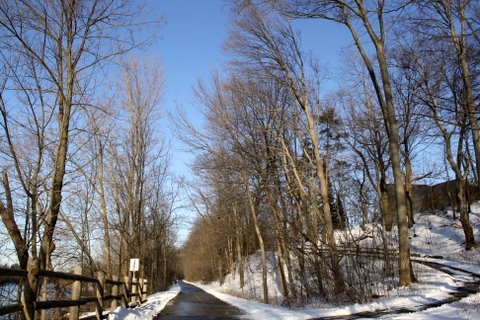 Los caminos secundarios estan bloqueados al transito vehicular, lo que no impide que uno los recorra a pie (a los que le han dado mantenimiento). Bien abrigado pues iba a una larga caminata.